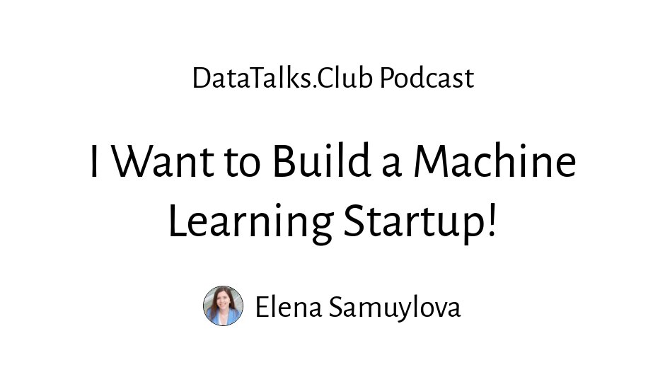 Alexey: Today we'll talk about building machine learning startups. We have a special guest today, Elena. Elena is the CEO and co-founder of Evidently AI, which is a startup that develops open source tools for machine learning model monitoring. She has been in the machine learning space since 2014. Evidently is not her first startup. Before Evidently, Elena co-founded an industrial AI startup, so Elena has a lot of experience with startups. (2:01)