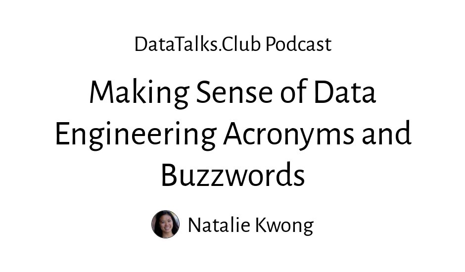 Alexey: This week we'll try to make sense of common engineering acronyms and buzzwords with the help of our special guest today, Natalie. Natalie works at Airbyte, focusing on building user experience and overseeing analytics. Your expertise includes scaling analytics teams and systems from the ground up. Welcome, Natalie. (1:34)