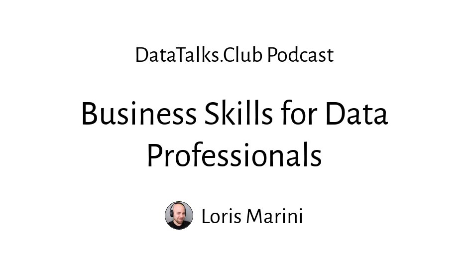 Alexey: This week we'll talk about business skills for data professionals. We have a special guest today, Loris. Loris is the CEO and founder of Discovering Data, where he's on a mission to build a bridge between business leaders and data leaders. Loris hosts the Discovering Data Podcast, a show for business leaders and data professionals who want to turn data into outcomes. Welcome Loris! (1:42)