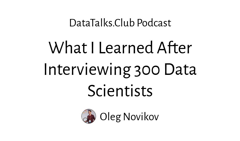 Alexey: I wanted to ask you a few things. What did you actually learn after interviewing 300 data scientists? (58:14)