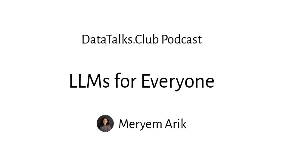 Alexey: This week, we'll talk about ways to put LLMs (large language models) into production. We have a special guest today, Meryem. Meryem is a “recovering” physicist (very interesting) and the co-founder of TitanML. Titan ML is an LLP development platform that focuses on the deployability of LLM and allows businesses to build smaller and cheaper deployments of language models. Welcome to the show! (1:07)