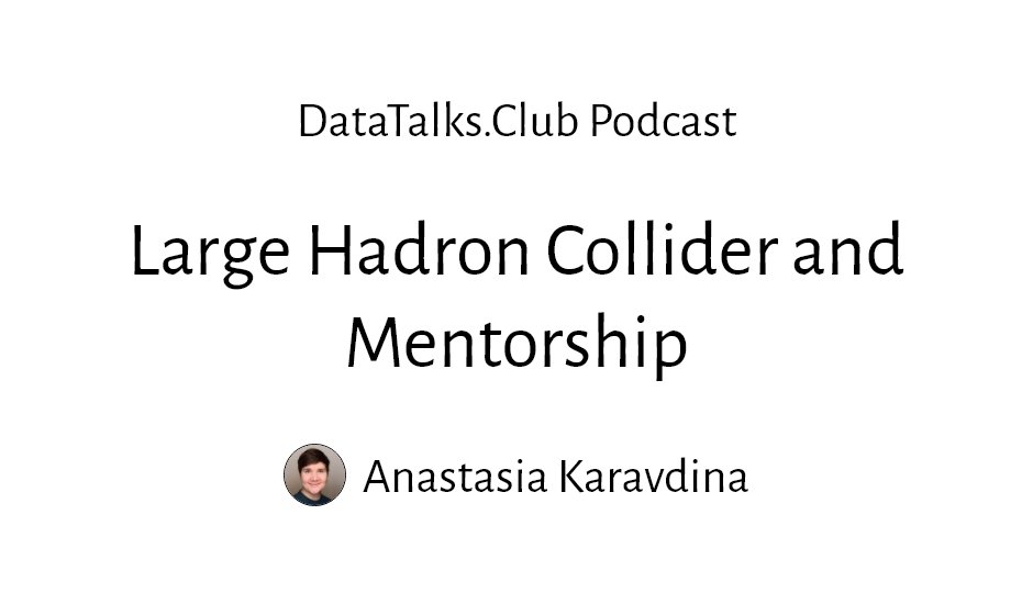 Alexey: This week, we’ll talk about your career. Specifically, your transition from working as a physicist at the Large Hadron Collider to working with ML. We have a special guest today, Anastasia, who is a particle physicist turned data scientist. She has experience conducting experiments at the Large Hadron Collider and later at Blue Yonder, where she developed AI solutions for global supply chains. She also led NLP and search efforts at Kaufland, a major e-commerce chain in Germany. Anastasia is also an AI/ML mentor and is passionate about developing the next generation of data science talent in Germany. Welcome to our show, Anastasia! (0.0)