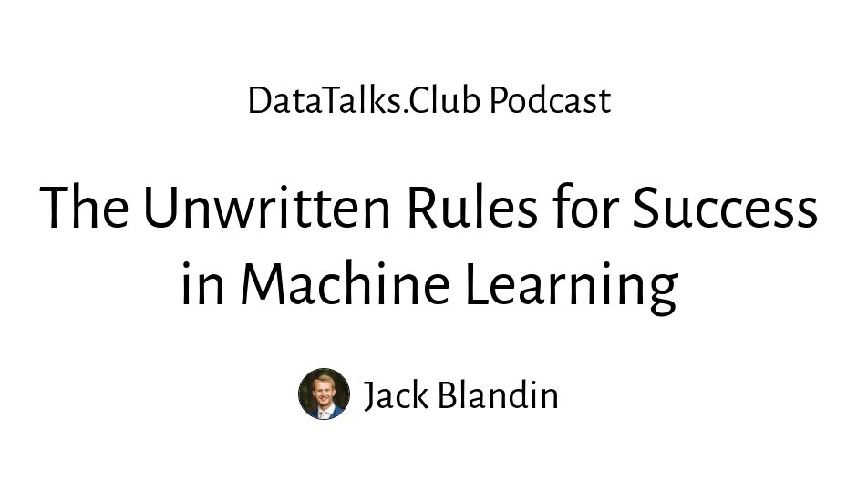 Alexey: This week, we'll talk about the unwritten rules for success in machine learning, and many other things. We have a special guest today, Jack. Jack transitioned from software engineering to data science, and he worked as both an individual contributor and in leadership roles. He managed, at some point, teams of up to 15 people – currently, he is the VP of data science and machine learning. And soon, (there's even a date, November 15) he plans to move to become an entrepreneur. Welcome to our podcast! (13.0)