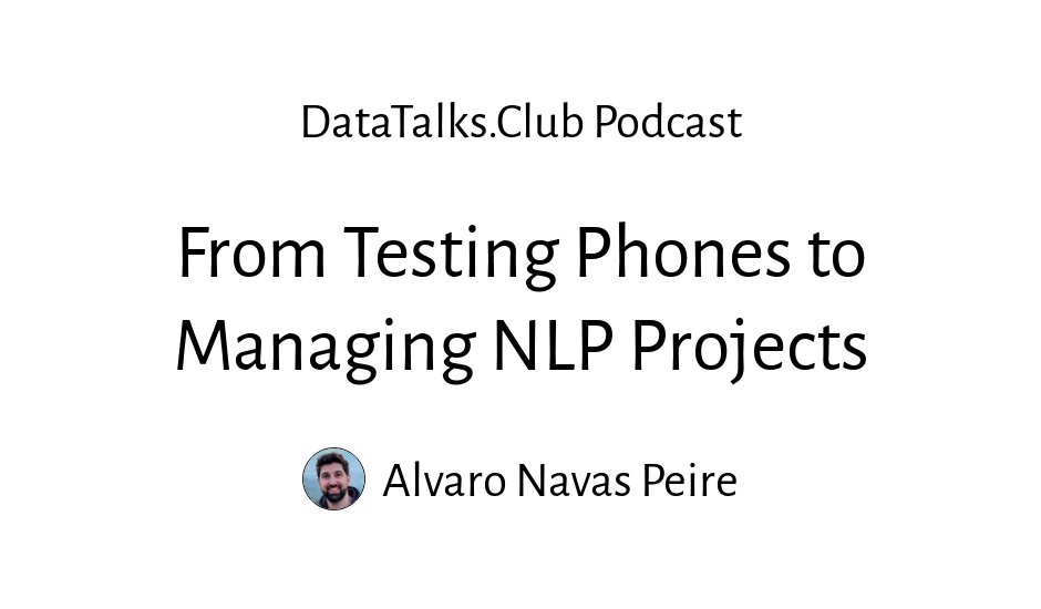 Alexey: Right now, Alvaro is managing machine learning and NLP projects. I got to know Alvaro when he took part in our machine learning and data engineering Zoomcamps, via our courses, and he published some awesome notes. If you're taking the course right now, you must have seen his notes – they're really amazing. If you haven't, please do check them out. He also helped other students a lot during the course. I'm very happy to invite Alvaro to this interview and talk about his career journey. (1:15)
