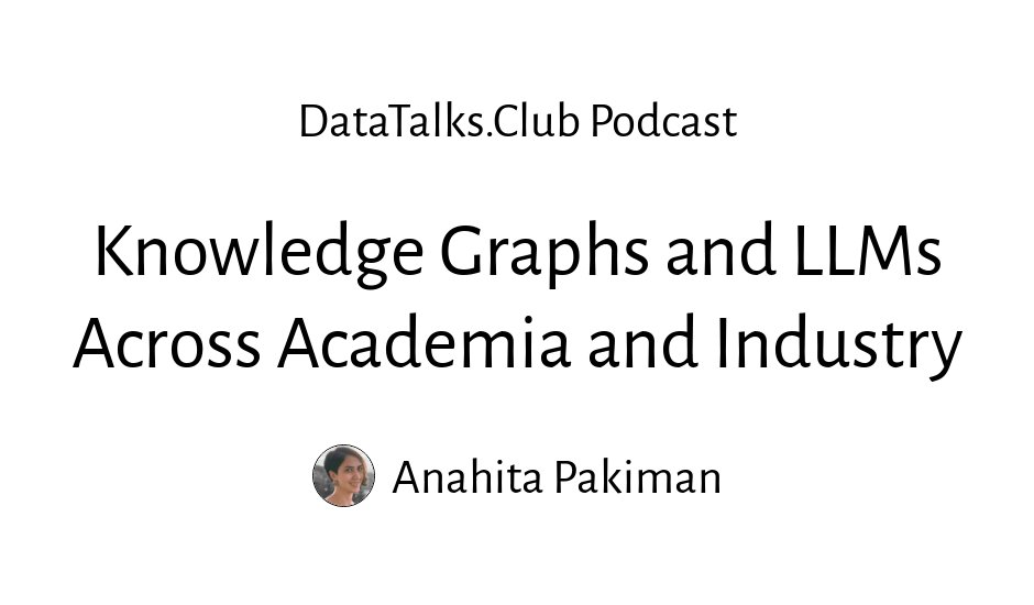Alexey: Let's go. This week, we will talk about knowledge graphs and LLMs lamps and how they are used in research in academia and industry. And we have a very special guest today, Anahita. Anahita is originally from Iran. She transitioned from mechanical engineering and specialized in applied mechanics in Sweden, then worked in the automotive industry for five years. (1:40)