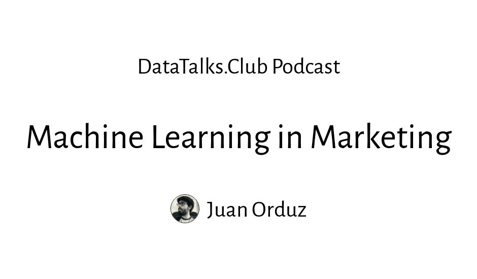 Alexey: This week, we'll talk about machine learning in marketing. We have a special guest today, Juan. Juan is a Berlin-based mathematician and data scientist. He is interested in statistical learning, time series analysis, Bayesian and geometric methods in data analysis. Welcome, Juan. (1:42)