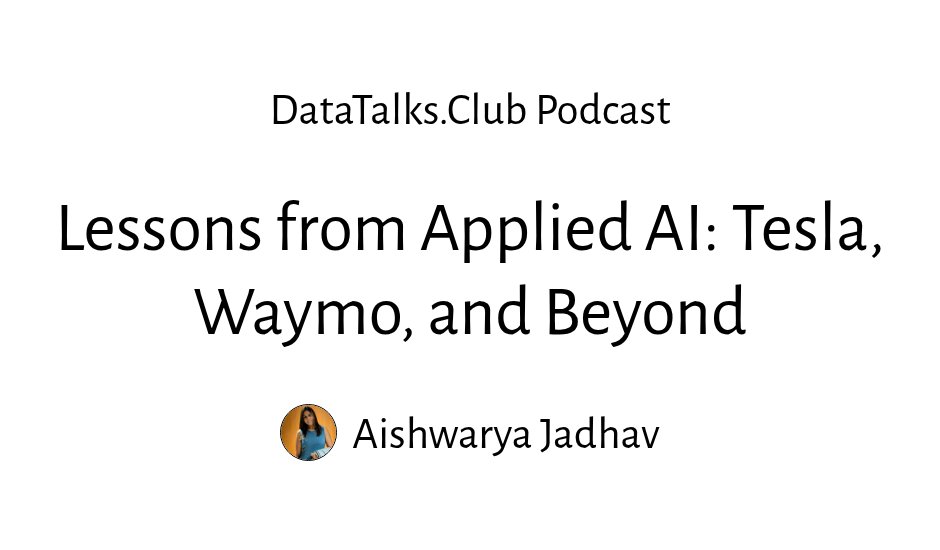Alexey: Good. Aishwarya is a Machine Learning Engineer at Waymo, formerly part of Tesla's Autopilot AI team and a Carnegie Mellon University alumna. She has worked across some of the toughest applied AI problems: financial recommendation systems at Morgan Stanley, multimodal research at CMU, perception and video understanding at Tesla, and now gesture and pedestrian semantics at Waymo. She has also contributed to AI for social good, including a malaria mapping project in Africa that achieved real-world impact at scale. Welcome to this event. (1:33)
