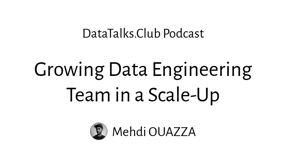 Alexey: This week, we will talk about growing a data engineering team in a scale-up. We have a special guest today, Mehdi. I know Mehdi as a content creator and a data engineer. We live in the same city, Berlin, and this is how we met. It was actually near Alexanderplatz, where I work. He has over eight years of experience in data and engineering. Now he works as a staff lead engineer. Today we will talk about scaling data teams in a scale-up. Welcome. (1:57)