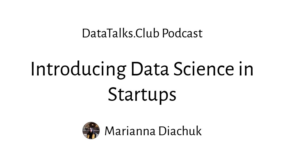 Alexey: We have a special guest today, Marianna. Marianna is a data scientist at Restream, and the data science lead and mentor in the local branch of Women Who Code community in Kiev. Before Restream, she worked at Data Robot and she also led the data science team in a fintech startup. Welcome. Before we go into our main topic, let's start with your background. Can you tell us about your career journey so far? (2.0)